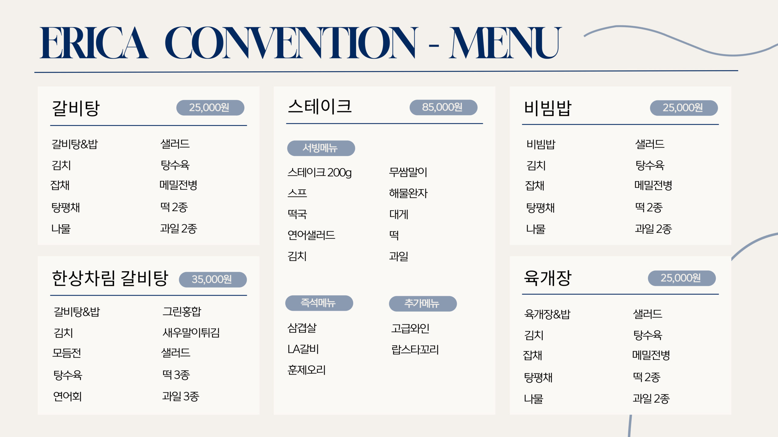 ※ 계절에 따른 메뉴 변동 있습니다. / 부가세 별도